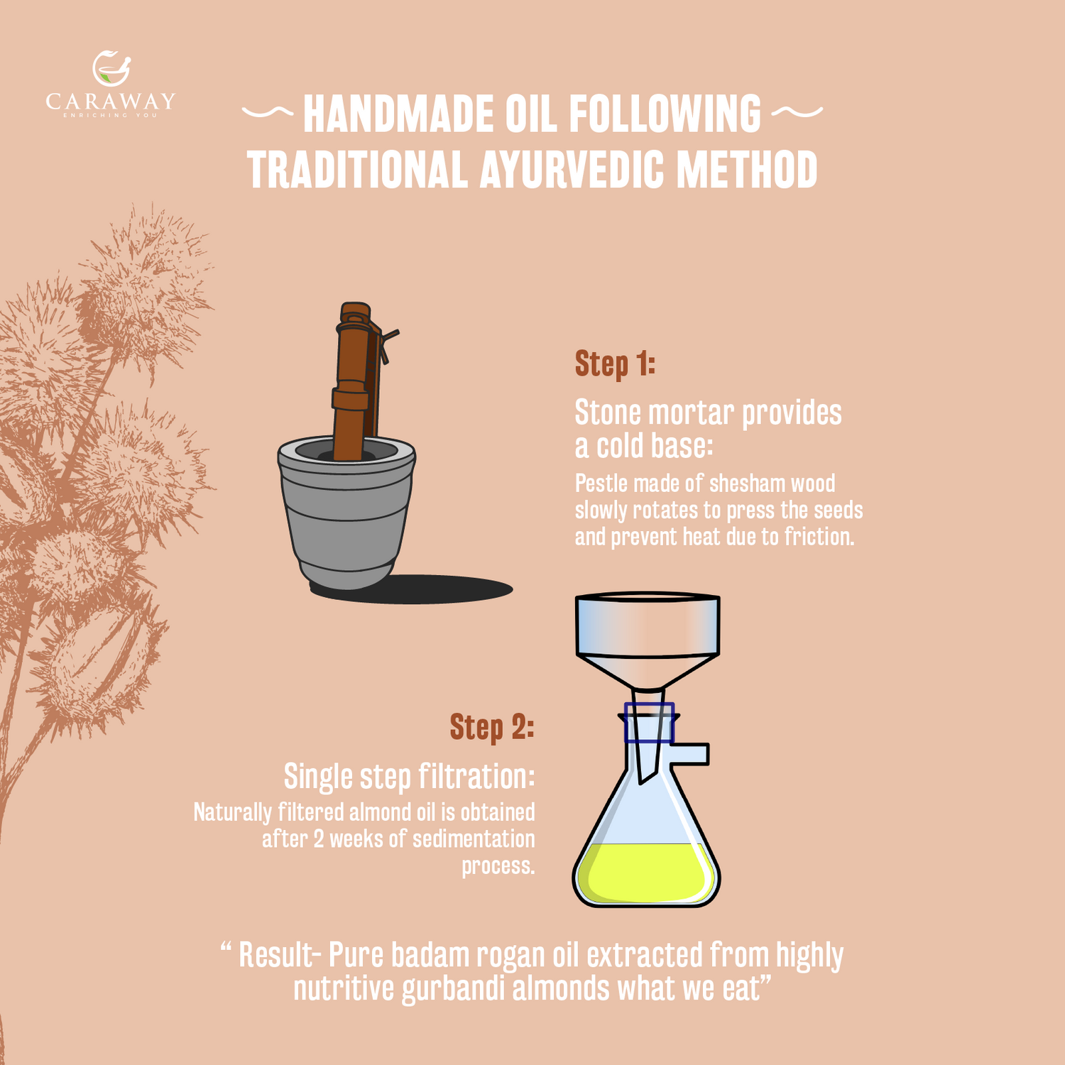 We specifically source Gurbandi Almond Packets meant for eating—yes, the ones you soak overnight! And here’s the secret: we don’t even tell our vendors that we use their almonds to extract our oils. Quality first, right?